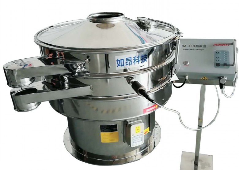附加在RA系列超声波振动筛筛网上的超声振动波(机械波),使超微细粉体接受巨大的超声加速度,从而抑制粘附、摩擦、平降、楔入等堵网因素,提高筛分效益和清网效益。